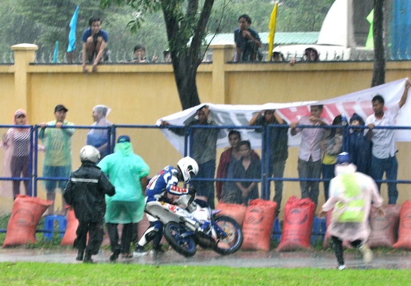 Ngày thi đấu thứ 2 diễn ra hôm qua 11/8 đã không thuận lợi như ngày đầu tiên. Trời mưa làm cho đường đua trơn trượt khiến nhiều tay đua bị đo ván. Mặc dù vậy, họ vẫn có những pha ôm cua, bốc đầu ngoạn mục khiến khán giả thích thú, hào hứng cổ vũ.