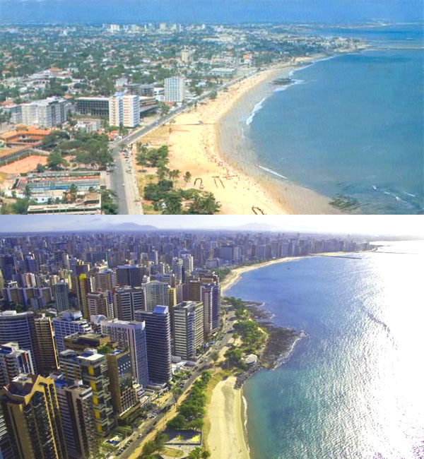 | Thành phố du lịch ven biển Fortaleza của Brazil trở nên hiện đại và sang trọng hơn hẳn theo thời gian. (Ảnh chụp năm 1970 và 2011). |