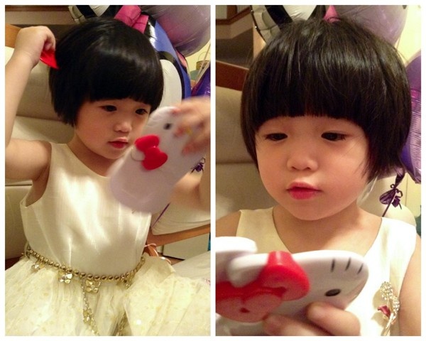 Còn nhỏ tuổi, bé Dâu đã được mẹ cho nuôi mái tóc dài rất dịu dàng.