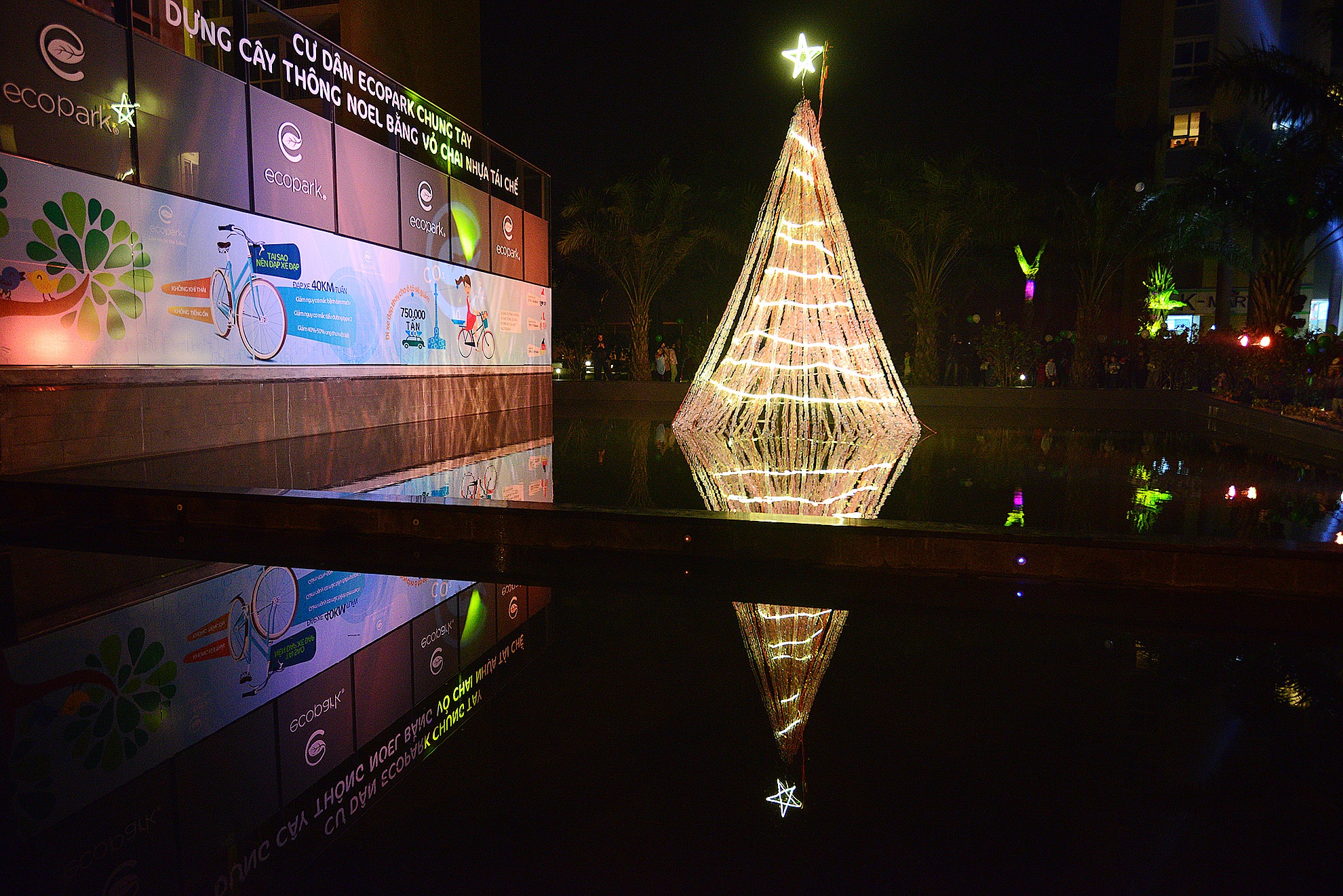 | Khu đô thị Ecopark thiết kế cây thông Noel được làm bằng những chai nước khoáng đã qua sử dụng. Đây là ý tưởng độc đáo để đón Giáng sinh và bảo vệ môi trường của cư dân đô thị này. |