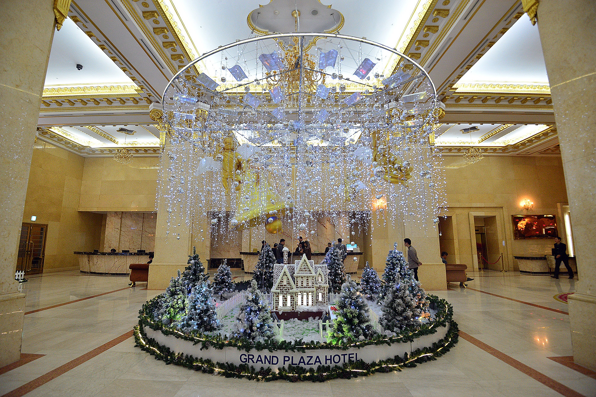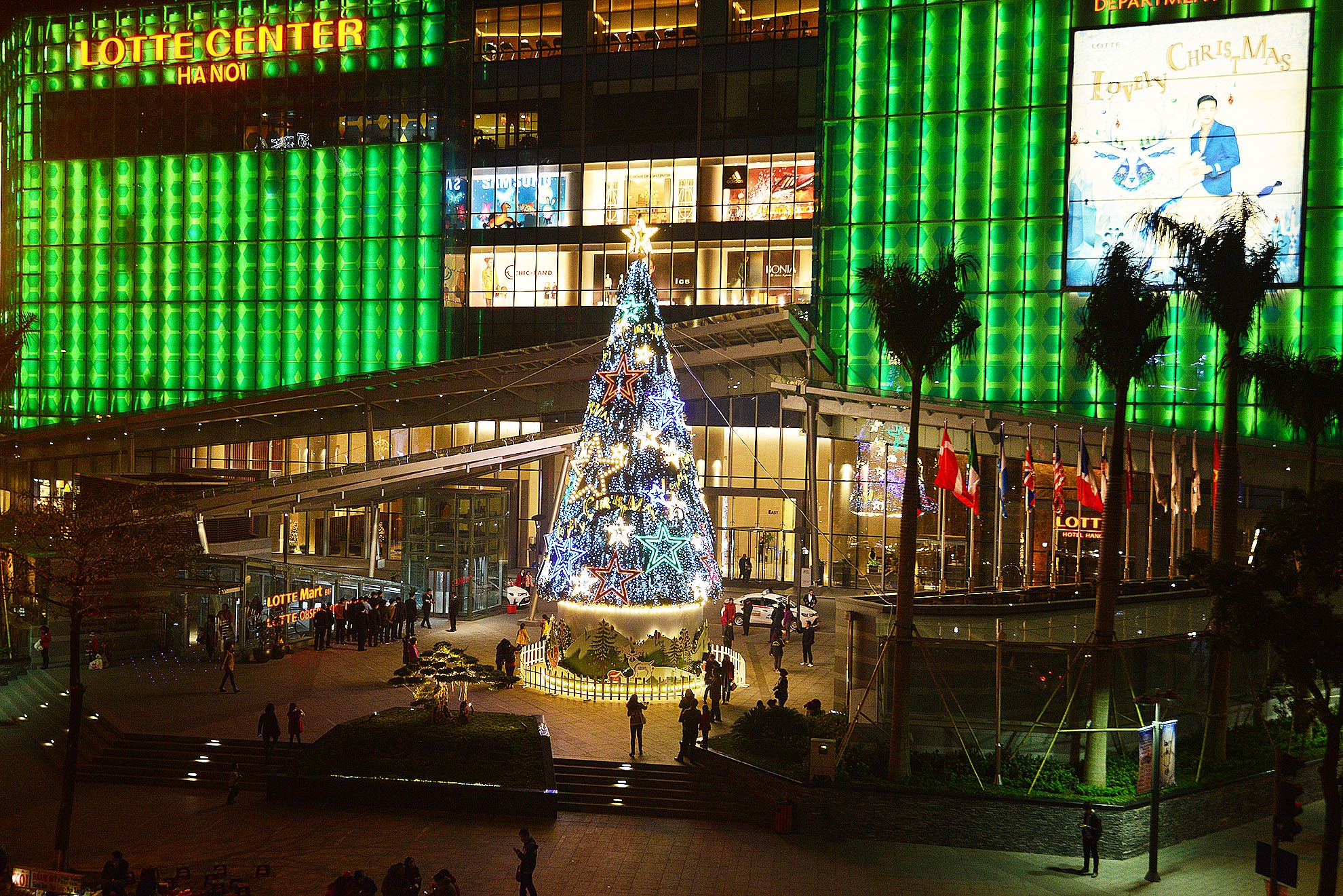 | Năm đầu tiên mở cửa đón khách Hà Nội, trung tâm thương mại Lotte trên phố Đào Tấn trang trí cây thông cao 20 m ở phía ngoài khu vực quảng trường. |