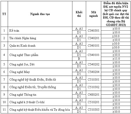 Điểm nhận hồ sơ xét tuyển NV2 (hệ đại học, cao đẳng) từ điểm sàn trở lên. Thời gian nhận hồ sơ đăng ký xét tuyển theo quy định của Bộ GD - ĐT.