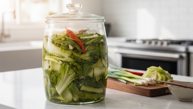 Hũ đựng: Ưu tiên thủy tinh hoặc gốm sứ. Tuyệt đối tránh hũ nhựa rẻ tiền vì acid trong dưa có thể gây thôi nhiễm hóa chất.