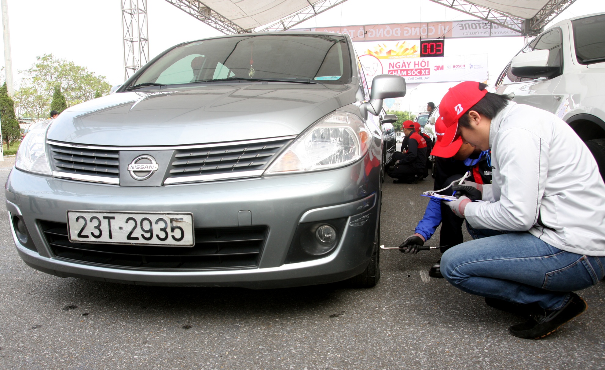| Với sự tư vấn của các chuyên gia kỹ thuật của Bridgestone Việt Nam, 3M Việt Nam và Bosch Việt Nam, người dùng ô tô ở Hà Nội đã được bổ sung các kiến thức chăm sóc, bảo dưỡng xe cũng như nâng cao ý thức trách nhiệm về độ an toàn sau tay lái. Theo chuyên gia Bridgestone Việt Nam, lốp xe phải được lựa chọn phù hợp và thường xuyên được kiểm tra áp suất, gai lốp. |