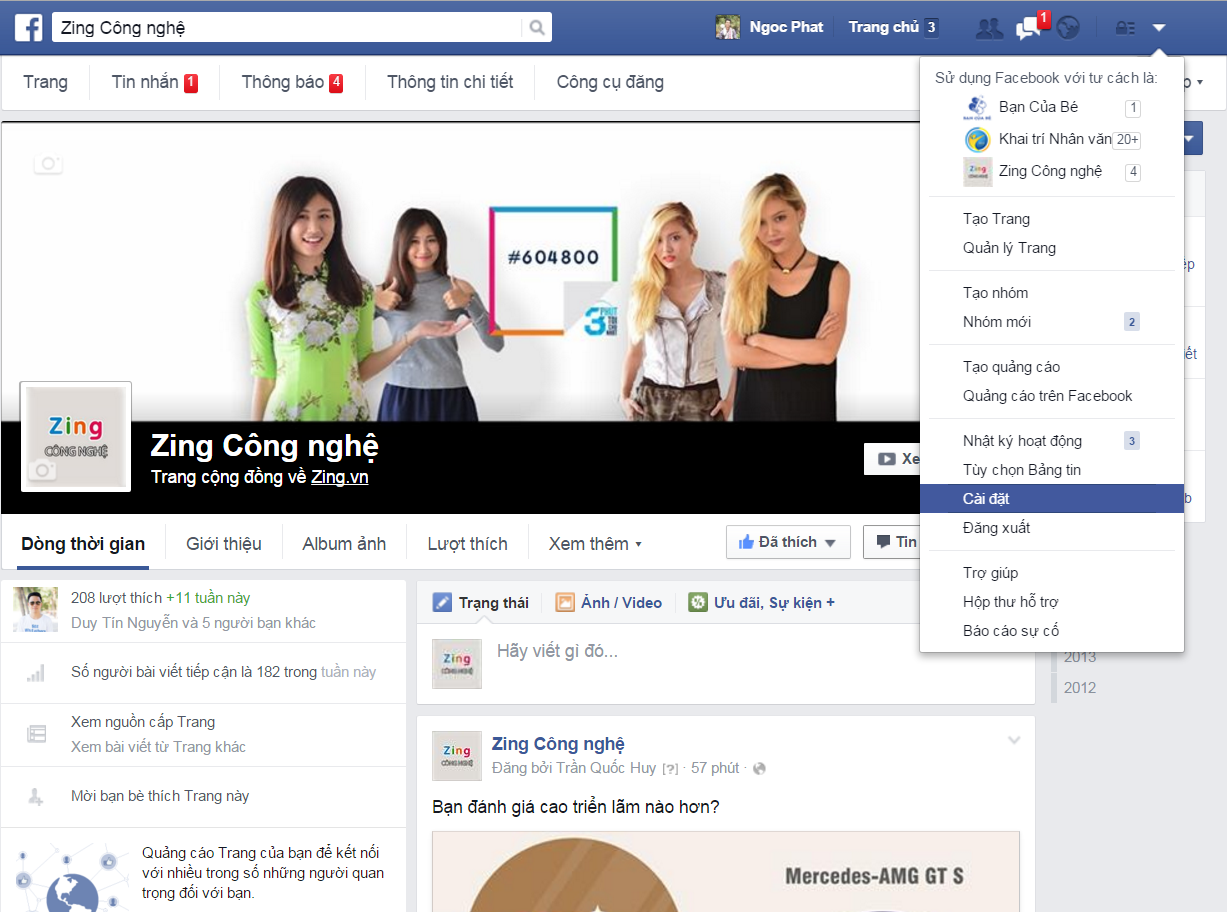 Bước 1: Từ giao diện chính của trang Facebook, vào Cài đặt