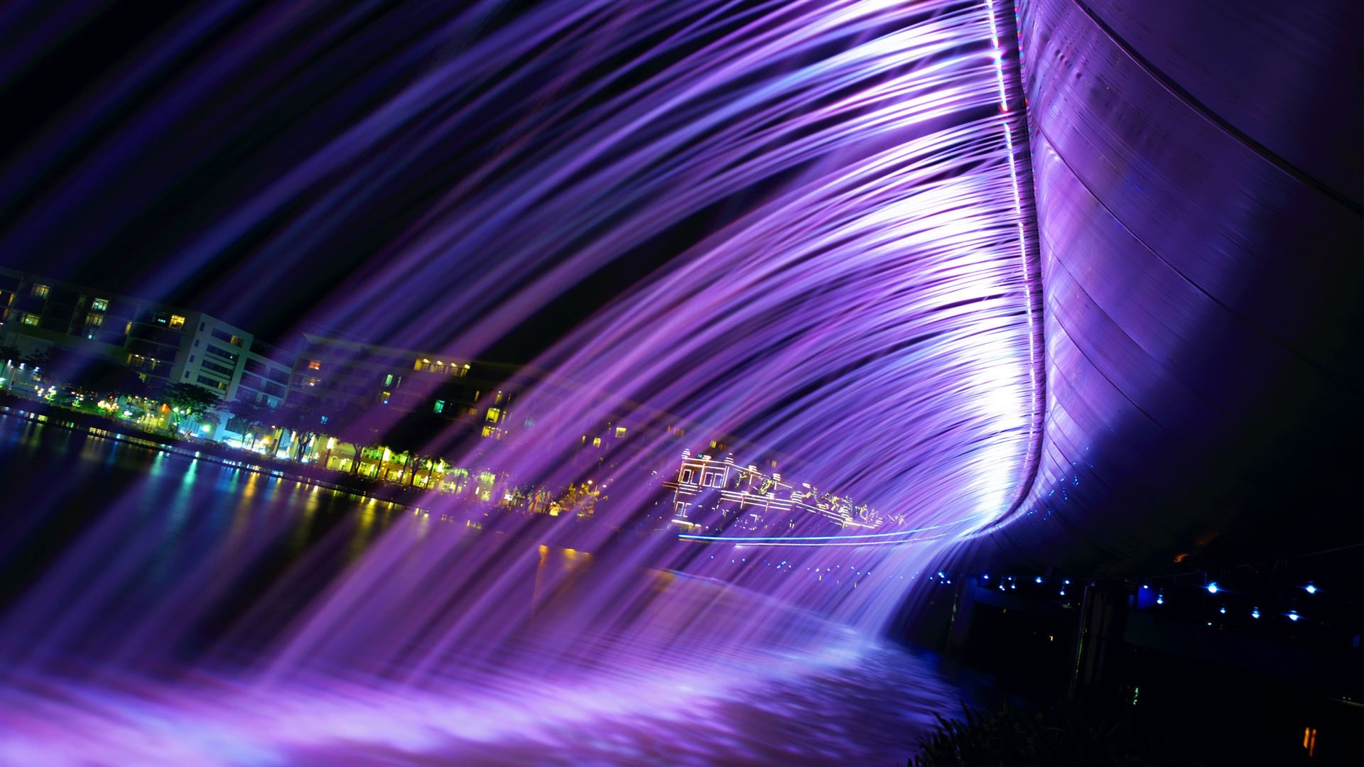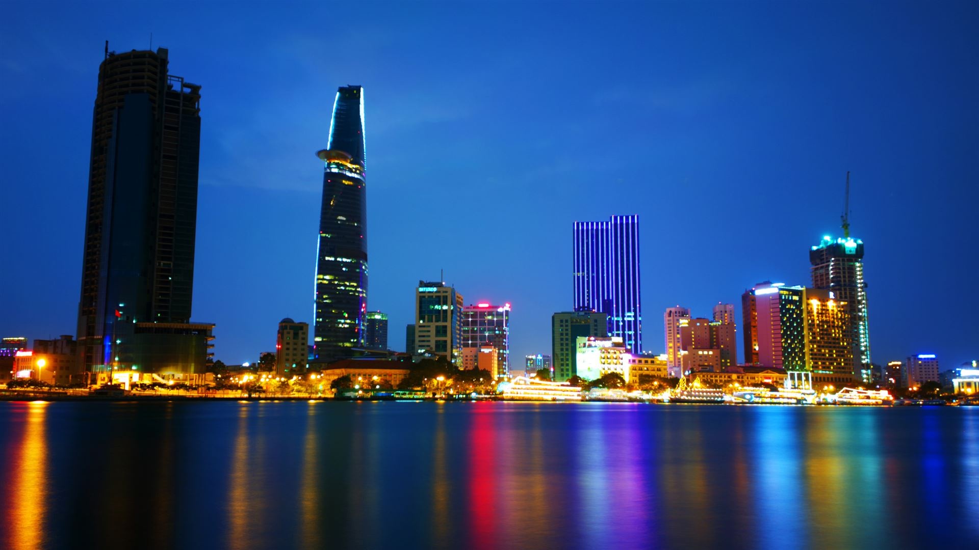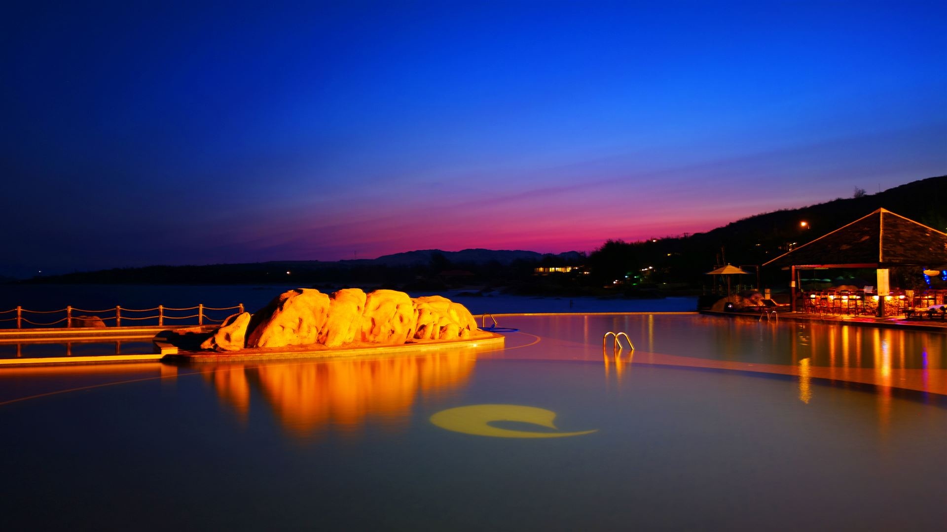 | Đây là bức ảnh chụp với ISO 100, phơi sáng 4 giây để tạo hiệu ứng mịn cho mặt nước. Để chụp ảnh đẹp, cần quan tâm đến thời gian. Tấm hình này được chụp vào thời điểm giờ xanh (sau khi mặt trời lặn). Người chụp cần lưu ý chỉnh cân bằng trắng thích hợp để tạo sự tương phản của màu vàng bóng đèn và nền trời. |