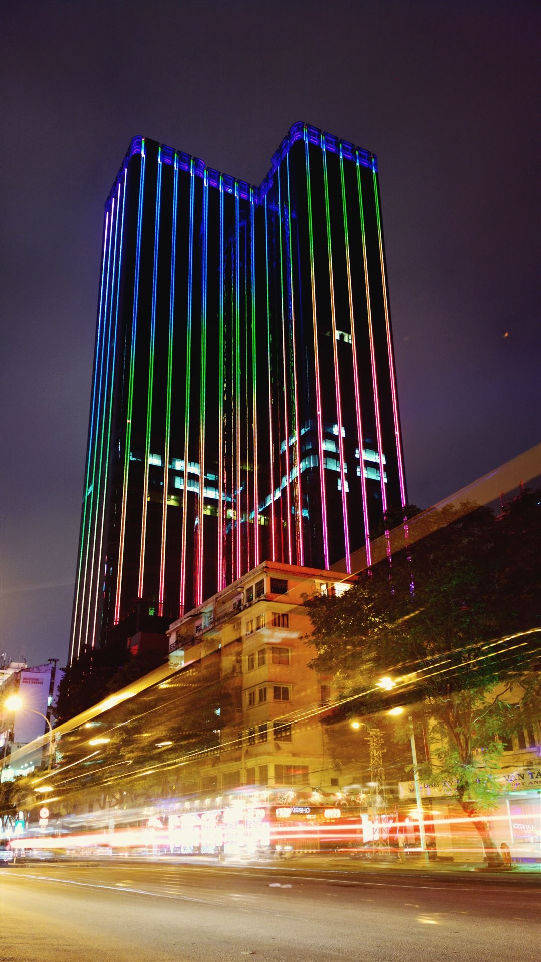 | Cầu Khánh Hội với thông số ISO 100, phơi sáng 4 giây, sử dụng ND Filter và kỹ thuật chồng hình để tạo hiệu ứng light trails . |