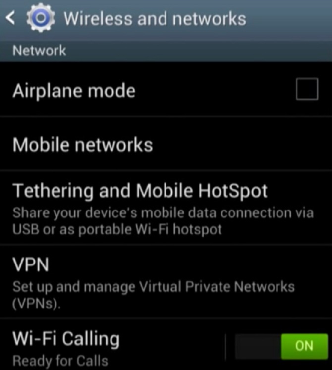 Tính năng này hầu như đều có trong các phiên bản Android mới nhất. Để kích hoạt "Wi-Fi Calling", bạn vào phần Settings (cài đặt) sau đó chọn "More" hoặc "More Settings" trong mục Wireless & network.