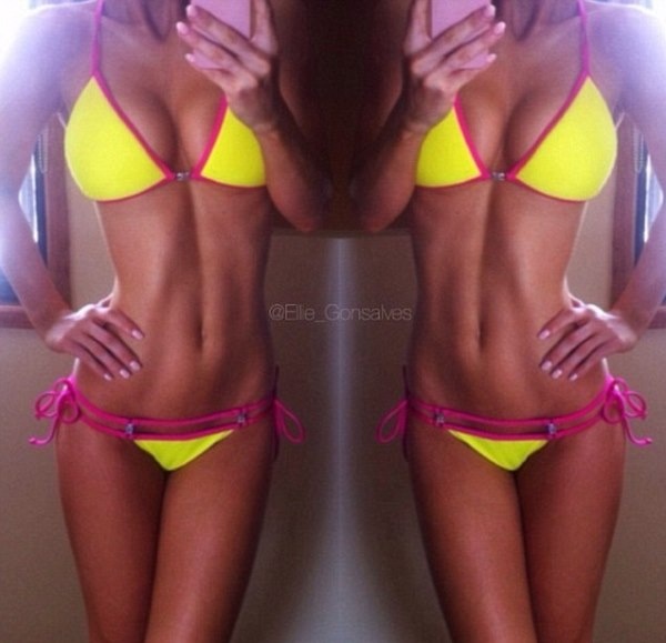 | Ellie Gonsalves cũng đã thành công trong việc khoe vóc dáng siêu mỏng và săn chắc của mình. |