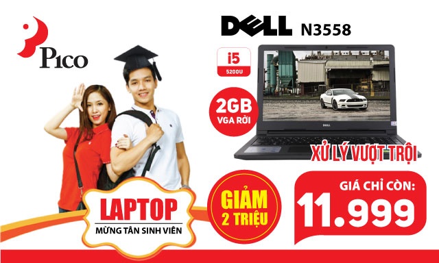 Từ ngày 11/9 đến ngày 17/9, giá của ASUS F555LF-XX166D tại siêu thị điện máy Pico được giảm 1,5 triệu đồng nay chỉ còn 10,999 triệu đồng với thời gian bảo hành lên tới 2 năm. Giá của Dell Inspiron N3558-70062972 được giảm tới 2 triệu đồng, chỉ còn 11,999 triệu đồng.