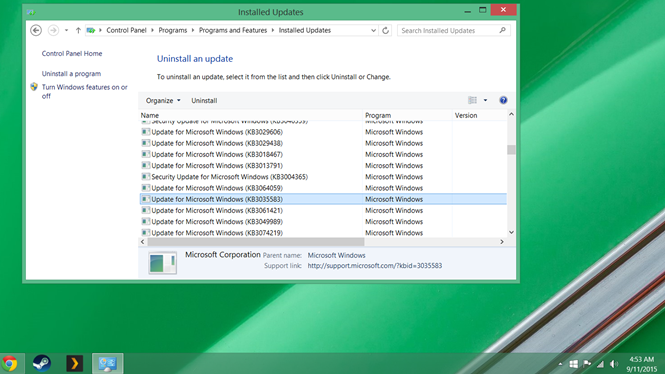 Với máy tính Windows 8: bạn xác định vị trí các bản cập nhật 3035583, 2976978