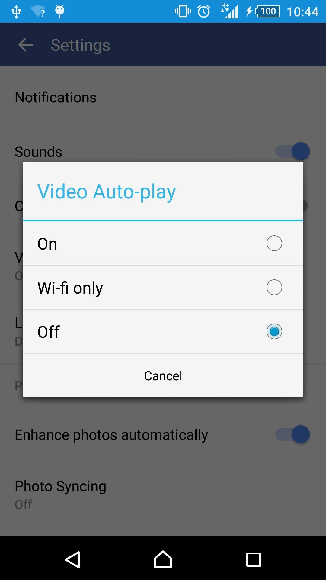 Nếu bạn không nhìn thấy chế độ thiết lập cho Video Auto-play, hãy đăng xuất khỏi tài khoản và sau đó đăng nhập lại. Lựa chọn này sẽ xuất hiện trong phần App Settings.