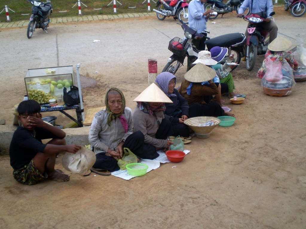 | Những người ăn xin đang ngồi chờ đợi sự bố thí của khách qua đường. |
