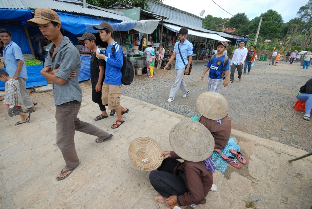 | Ngoài những tay ăn xin còn có những người như bán nhang, sách mê tín dị đoan luôn bám theo khách để mời mua. |