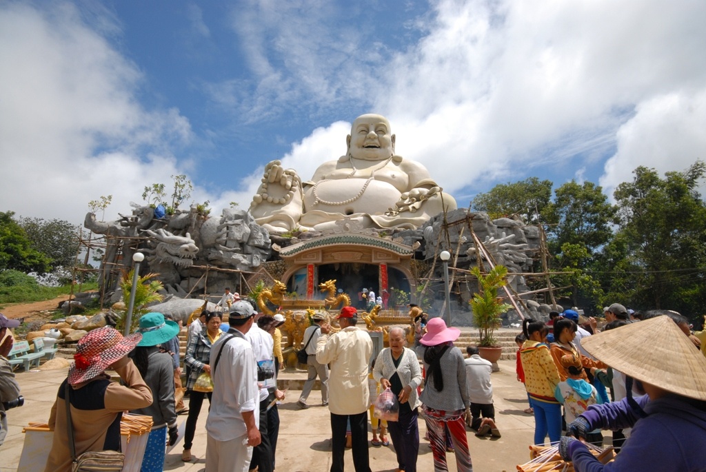 | Mặc dù tại cổng chùa có bảng cấm, nhưng hàng chục người vẫn kéo đến ngồi. |