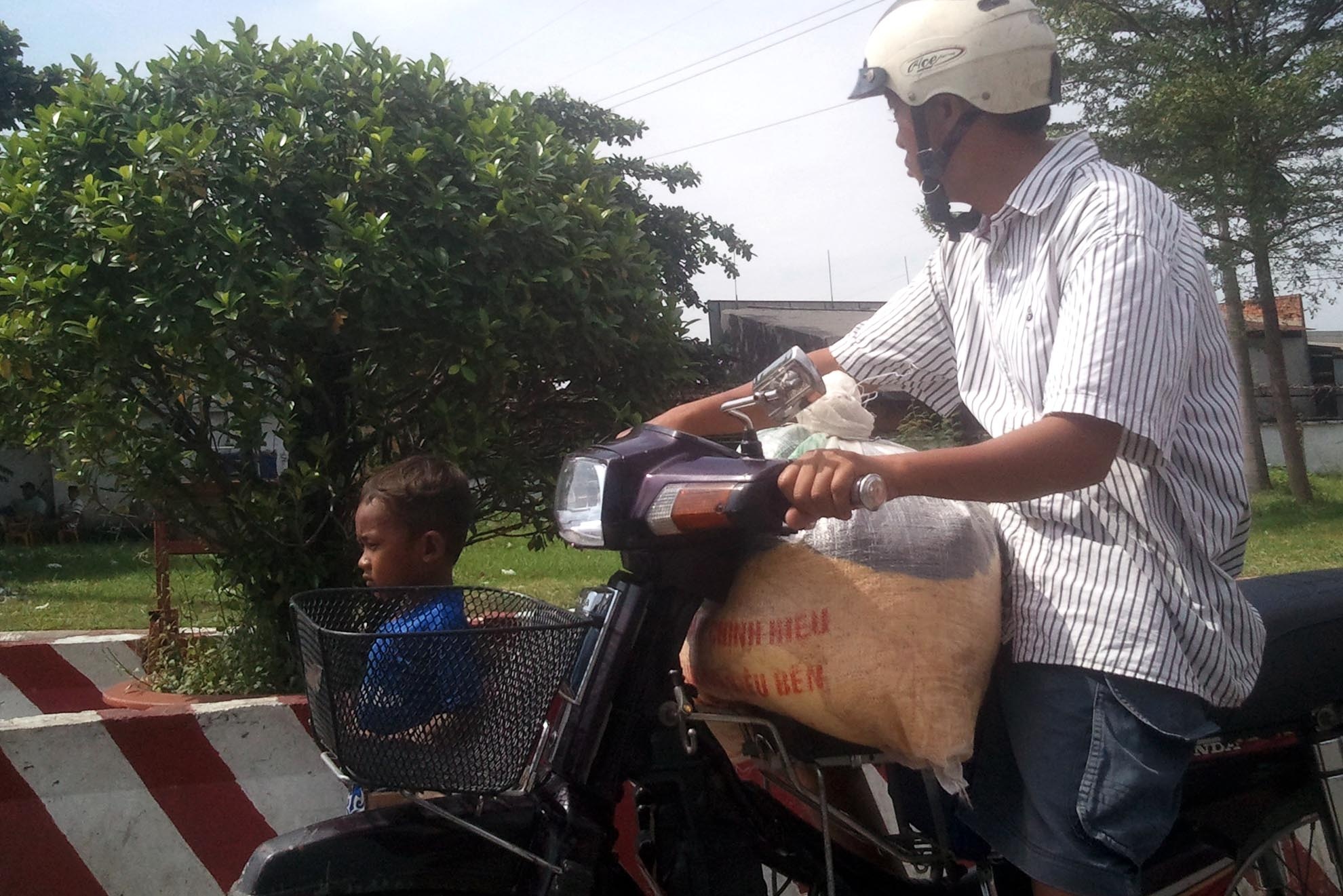 | Theo quan sát của phóng viên, 1 tuần gần đây, trước cổng khu công nghiệp này xuất hiện 3 người phụ nữ và một bé gái chừng 13 tuổi. Mỗi khi có đèn đỏ, họ lại bế 4 trẻ nhỏ 1-2 tuổi, cùng hai trẻ 5-10 tuổi lao ra đường xin tiền. Đây là những người Campuchia tới TP.HCM qua cửa khẩu Mộc Bài. |