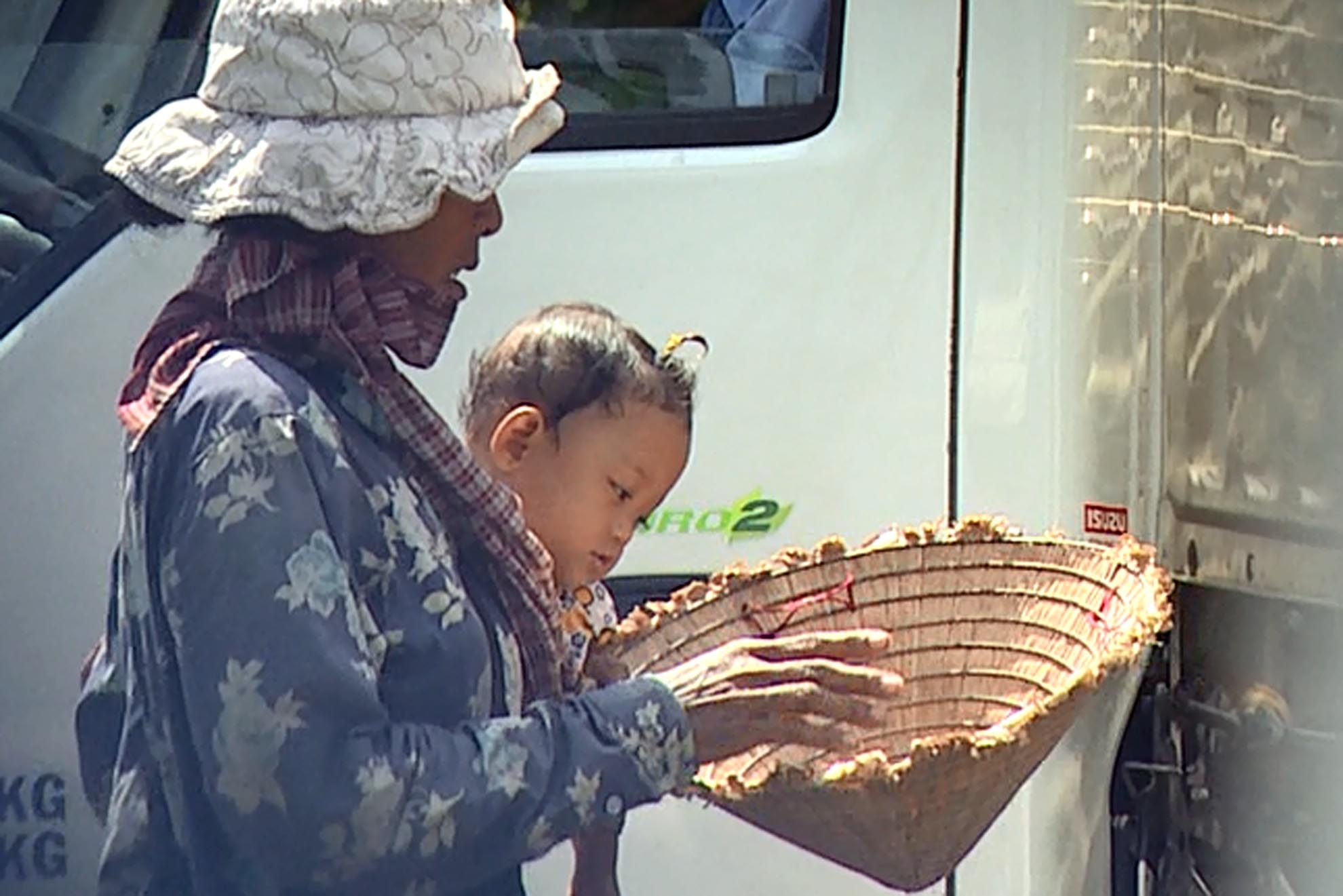 Những cái bang nhỏ tuổi người Campuchia phải cùng các phụ nữ lớn tuổi phơi nắng để xin tiền. Một số trẻ bị cởi trần để người đi đường mủi lòng thương.