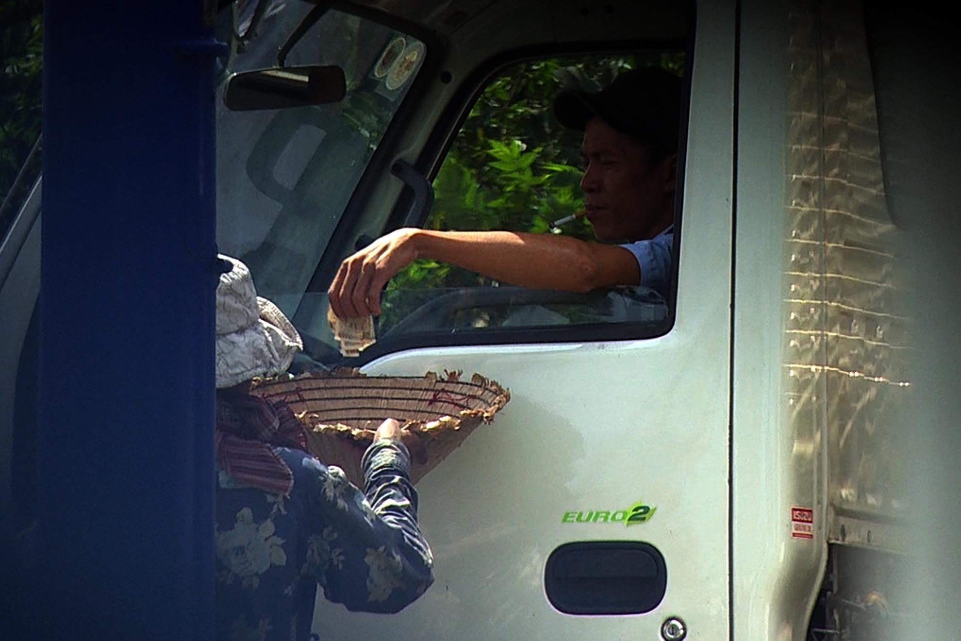 | Những trẻ nhỏ bị bồng bế đi lại giữa nắng nóng và khói bụi từ sáng cho đến chiều tối. Ngay cả thời điểm trưa nắng gắt, họ vẫn mang các bé ra để lấy lòng thương hại của mọi người. "Nhìn thấy cảnh những trẻ nhỏ đen nhẻm bị phơi giữa nắng rất xót thương. Tôi đã không ít lần rút tiền lẻ cho trẻ mà lại bức xúc với những người lớn", anh Nguyễn Quang Toàn, tài xế xe tải thường xuyên qua đây nói. |