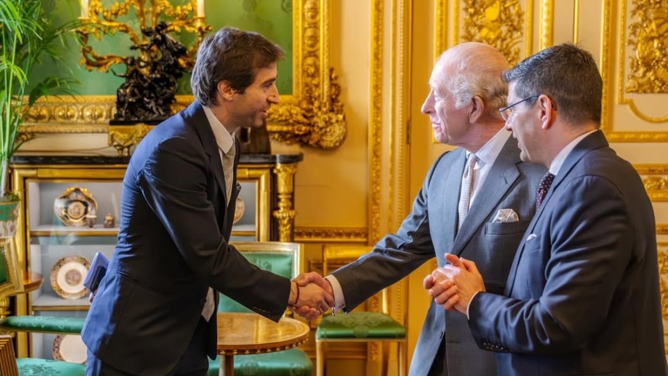 Flamini bắt tay với Vua Charles III.