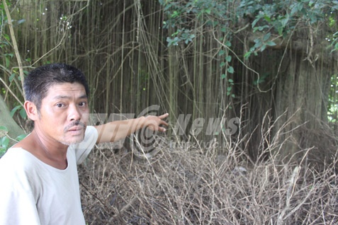 | Anh Tuấn chỉ nơi hai thợ rắn ở huyện Văn Giang (Hưng Yên) bắt được một con rắn hổ chúa. |