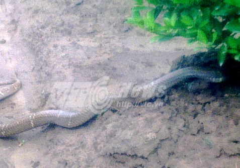 | Hai con rắn thường bò vào nghĩa địa Kim Lan phơi nắng. |