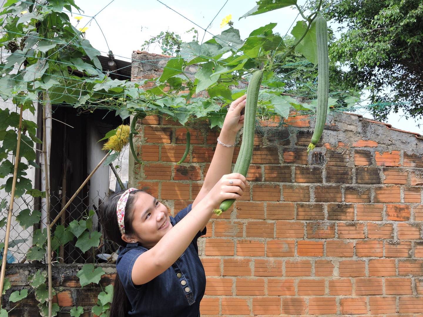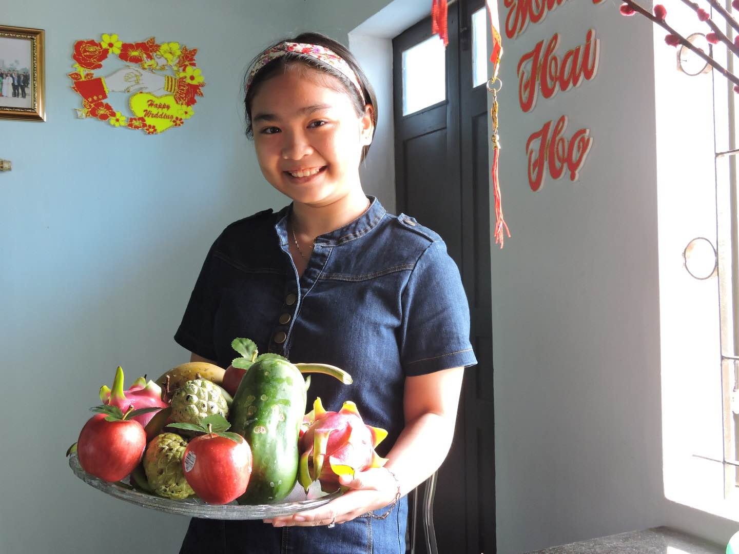 Là con út nên cô bé rất được ba mẹ cưng chiều, chỉ phải làm những việc vặt như hái các loại rau quả được trồng ngay trong vườn nhà. |