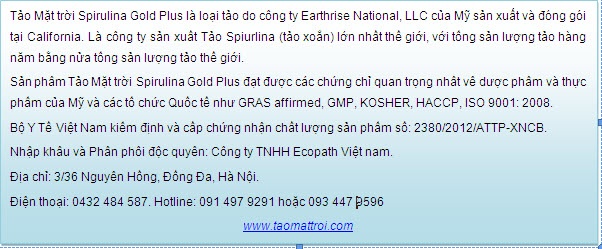 | Tảo Mặt Trời Spirulina Gold Plus |