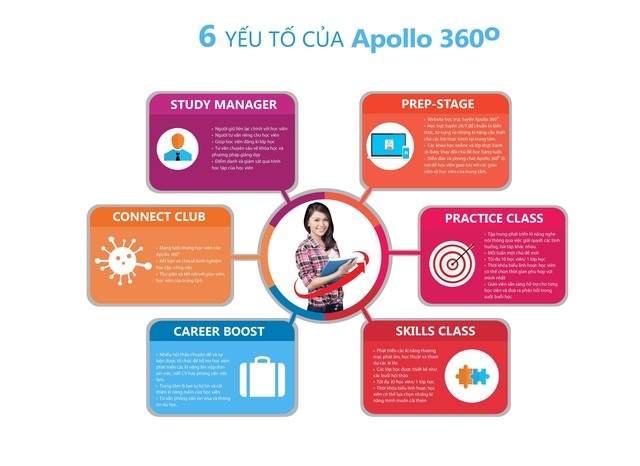 Điểm đặc biệt nhất của Apollo 360° chính là sự kết hợp hài hòa của 6 yếu tố trên nền tảng của phương pháp Flip, giúp học viên hoàn thiện kỹ năng tiếng Anh hiệu quả và toàn diện.