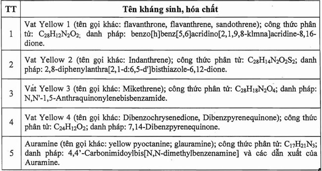 Cụ thể, Bộ NN&PTNT bổ sung chất Vat Yellow 1, Vat Yellow 2, Vat Yellow 3 và Vat Yellow 4 hay còn được gọi là "vàng ô" vào danh mục các chất cấm sử dụng trong chăn nuôi.