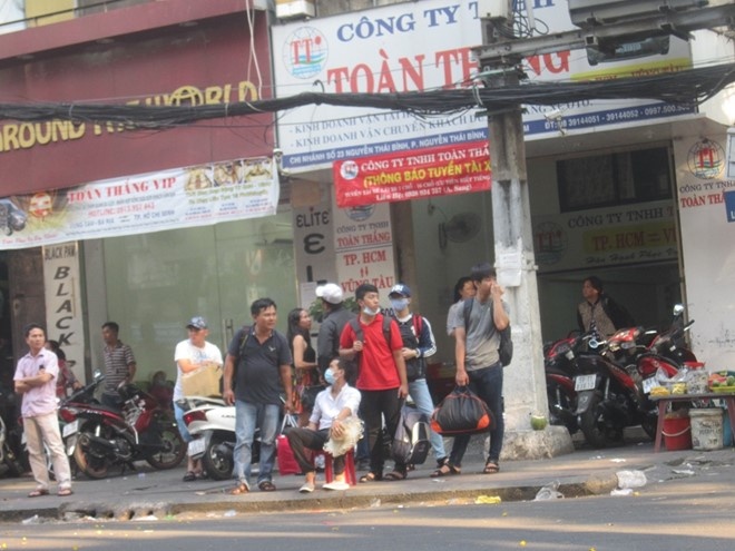 | Hành khách đứng trước Công ty Toàn Thắng trên đường Nguyễn Thái Bình chờ lên xe. |