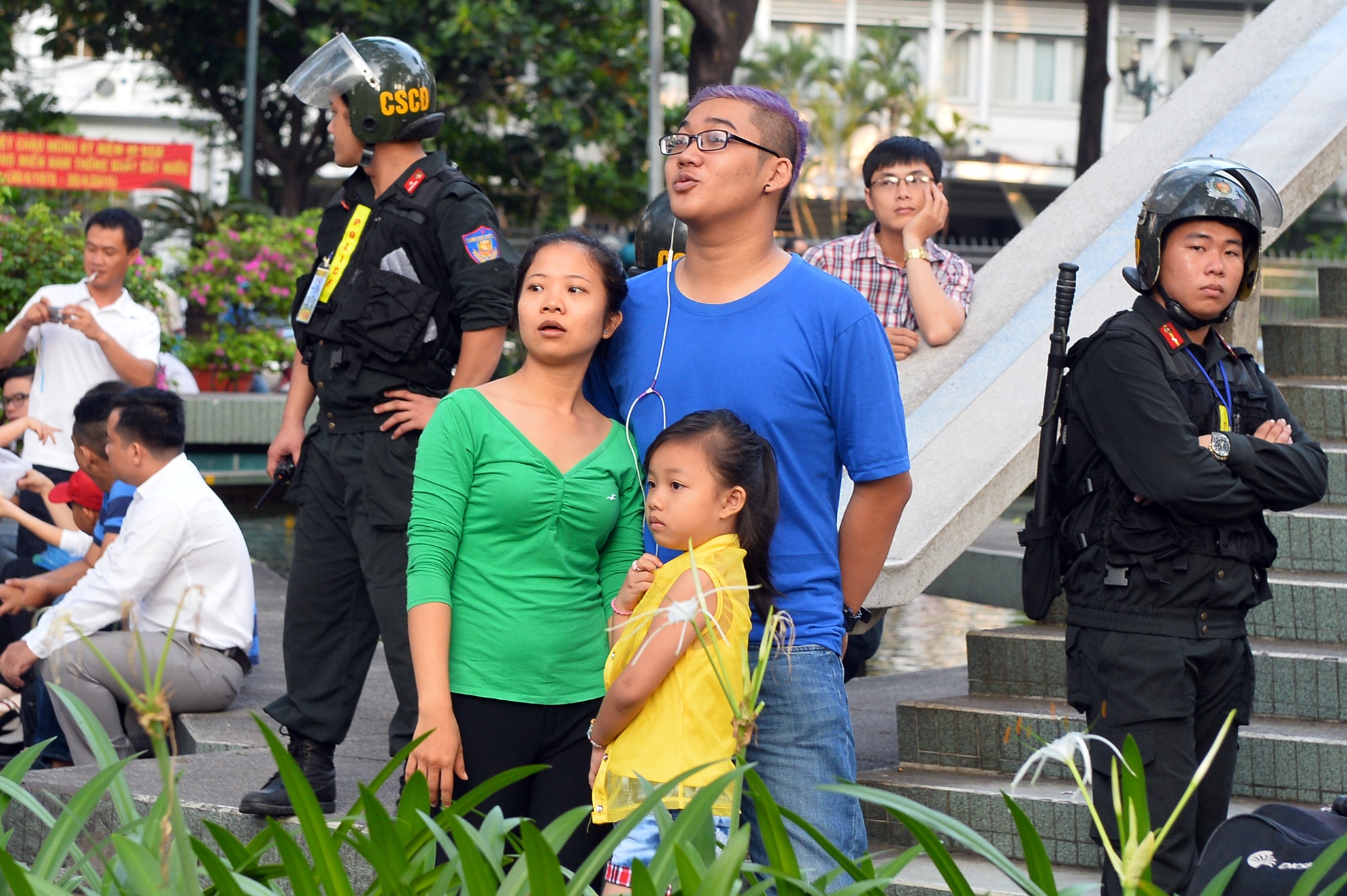 | Còn bà Lê Thị Kim Liên cùng chồng từ Hà Nội vào để được một lần xem diễu binh nhưng cũng không được vào. "Con tôi làm việc tại TP HCM, nhân thể vào chơi và thăm nó luôn. Ai ngờ diễu binh chỉ ở khu vực khán đài", bà nói. |