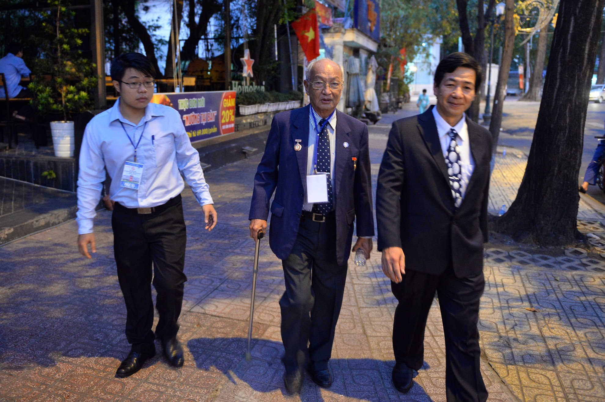 | 5h30 sáng, các đại biểu lần lượt đi bộ từ xa vào khu vực tổ chức mít-tinh. |