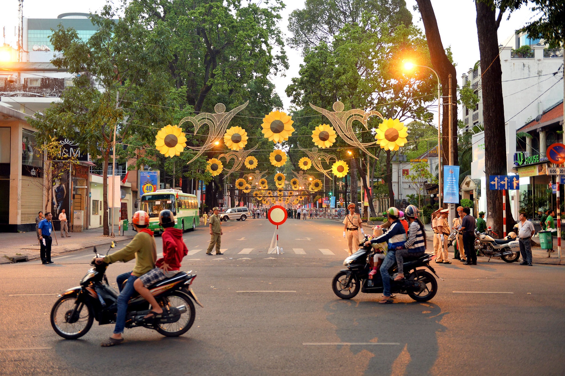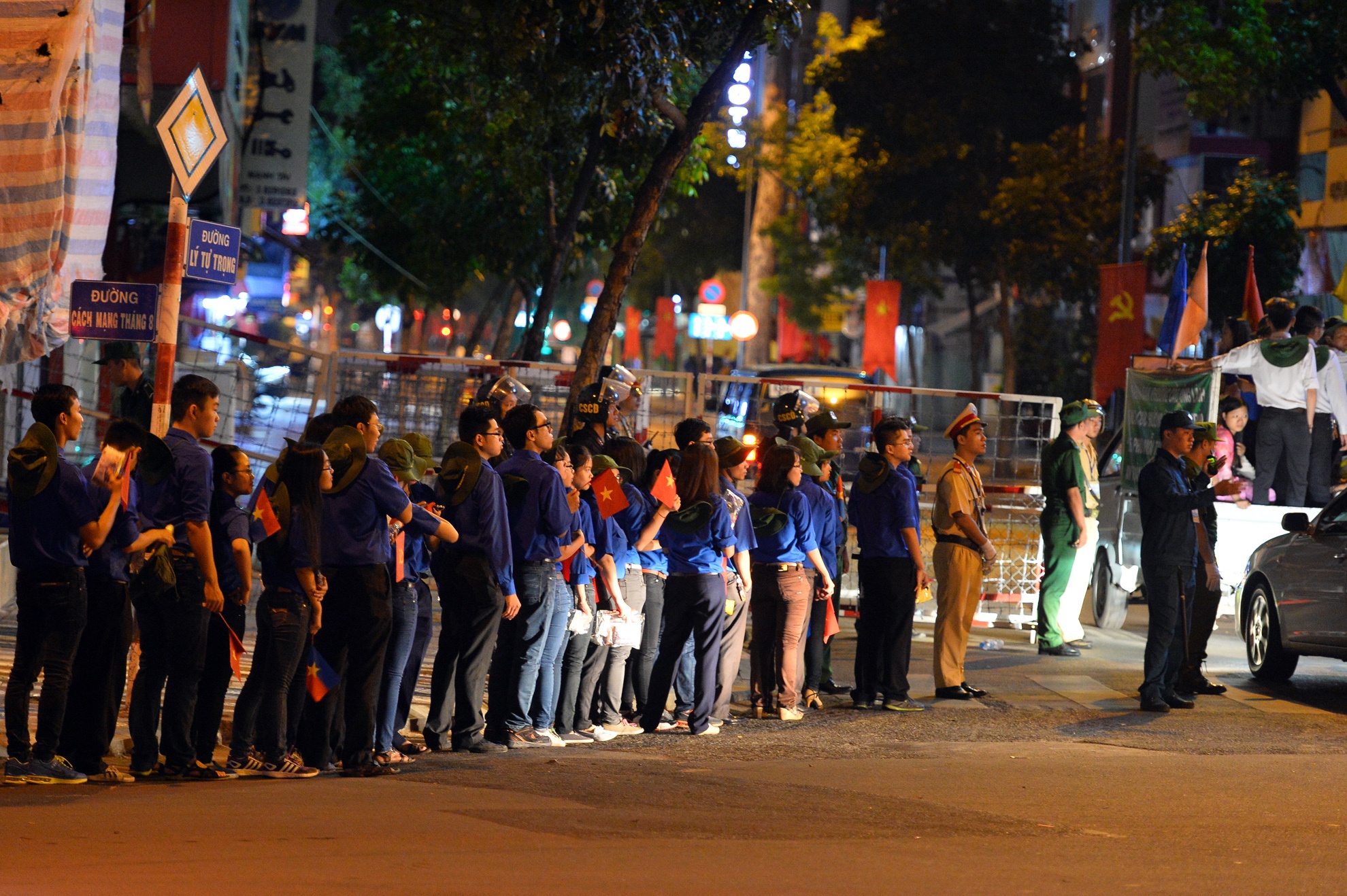 | Đường được cấm từ xa, cách nơi tổ chức cả cây số. Hình ảnh tại vòng xoay Phù Đổng, quận 1. |