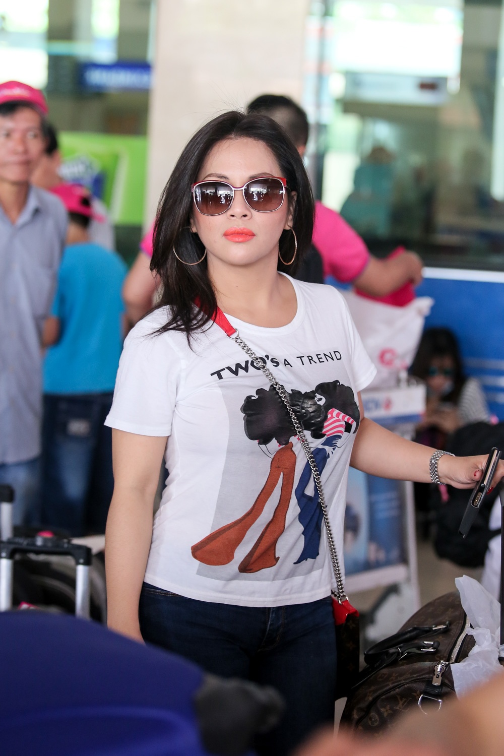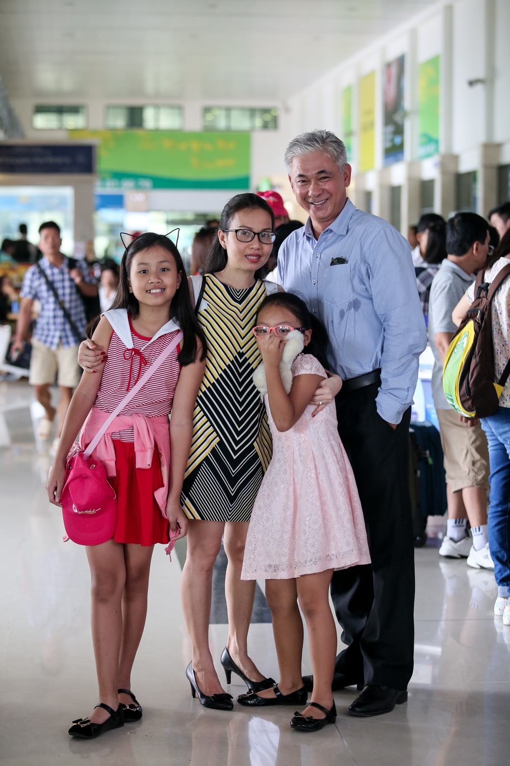 | Chiều 10/6, 3 chị em ca sĩ nổi tiếng của Vpop cùng đại gia đình hội ngộ tại sân bay Tân Sơn Nhất để cùng tham gia chuyến du lịch trong nước. Cẩm Ly xuất hiện với phong cách giản dị. Ra sân bay tiễn chị có nam diễn viên Tùng Yuki, cũng là một người bạn của gia đình. |