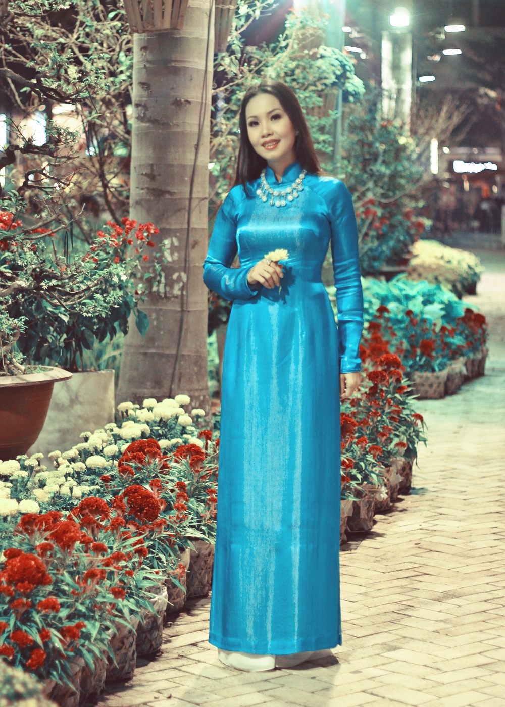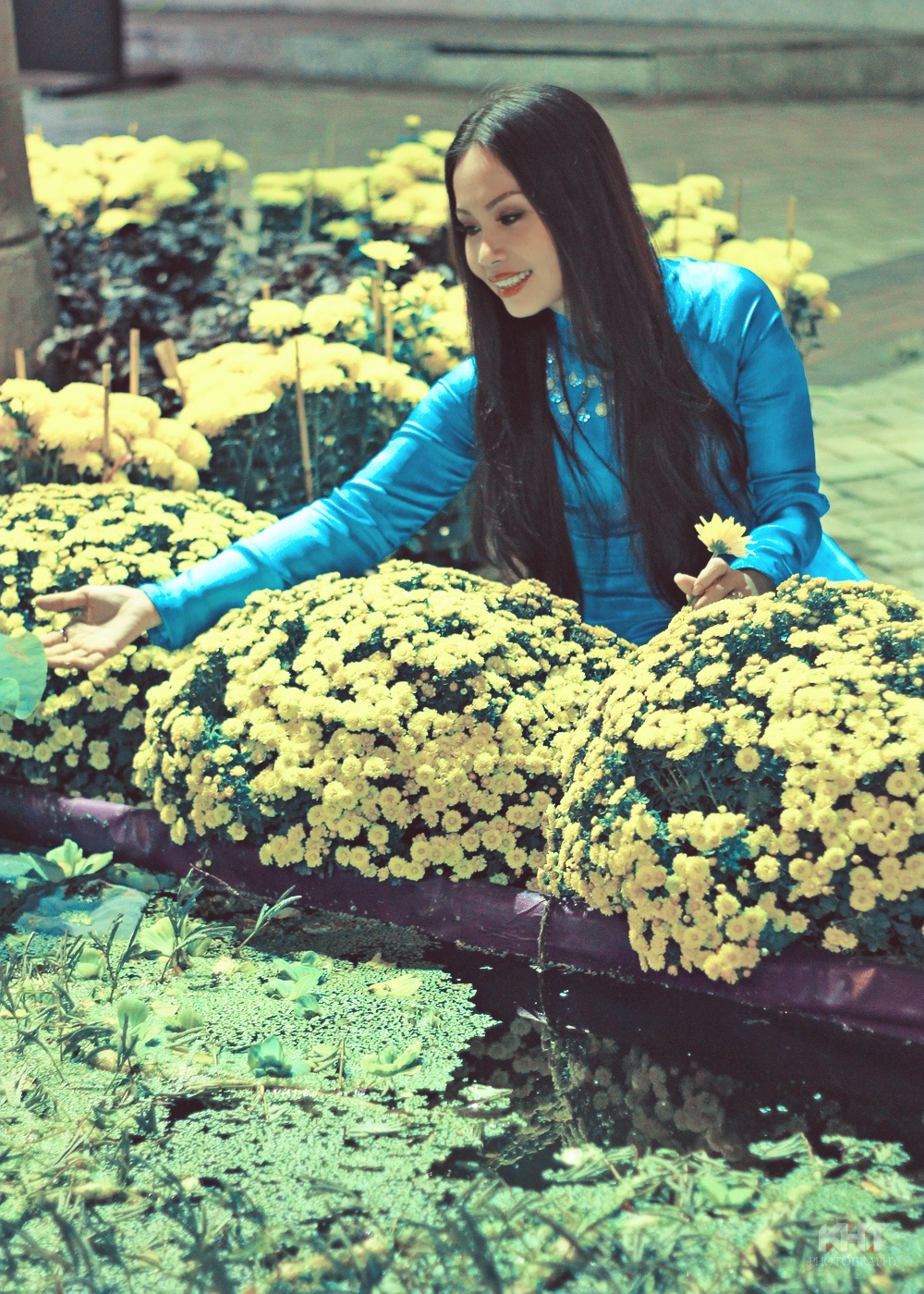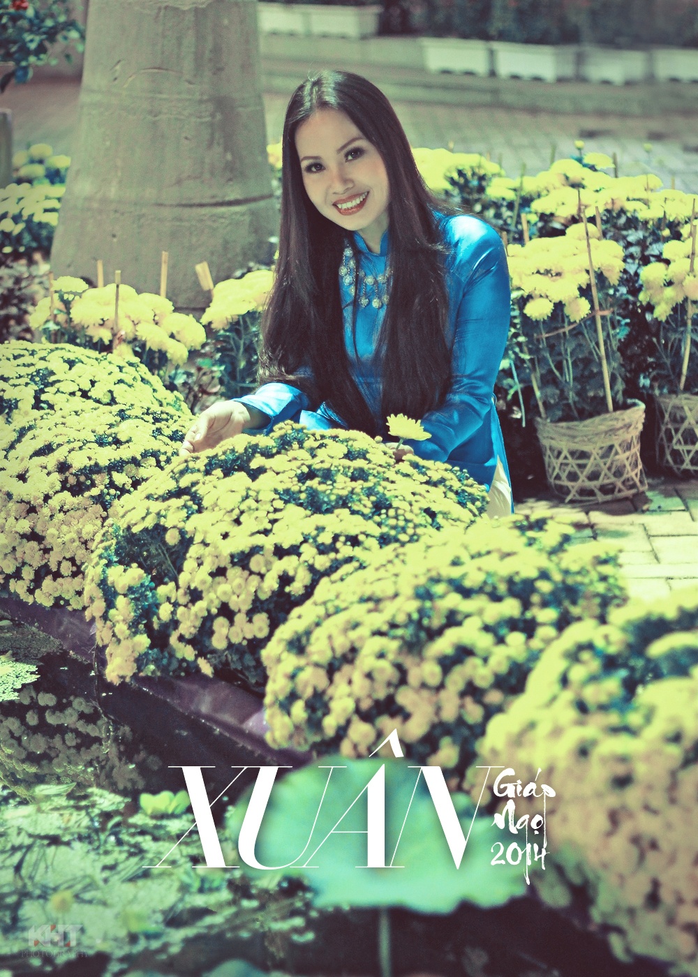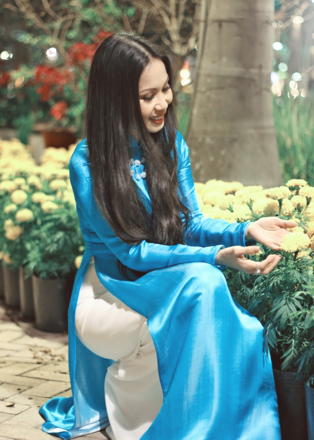 Nhờ vậy mà trong không gian tấp nập, rộn ràng của đường hoa, nữ ca sĩ vẫn toát lên nét dịu dàng, nhẹ nhàng của người phụ nữ.