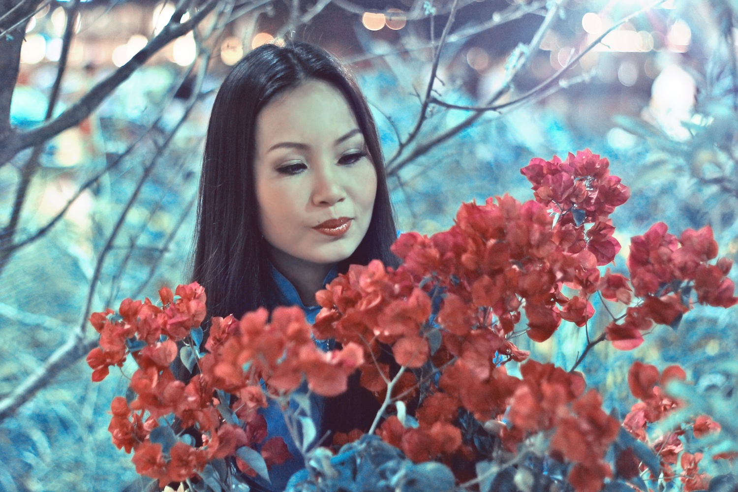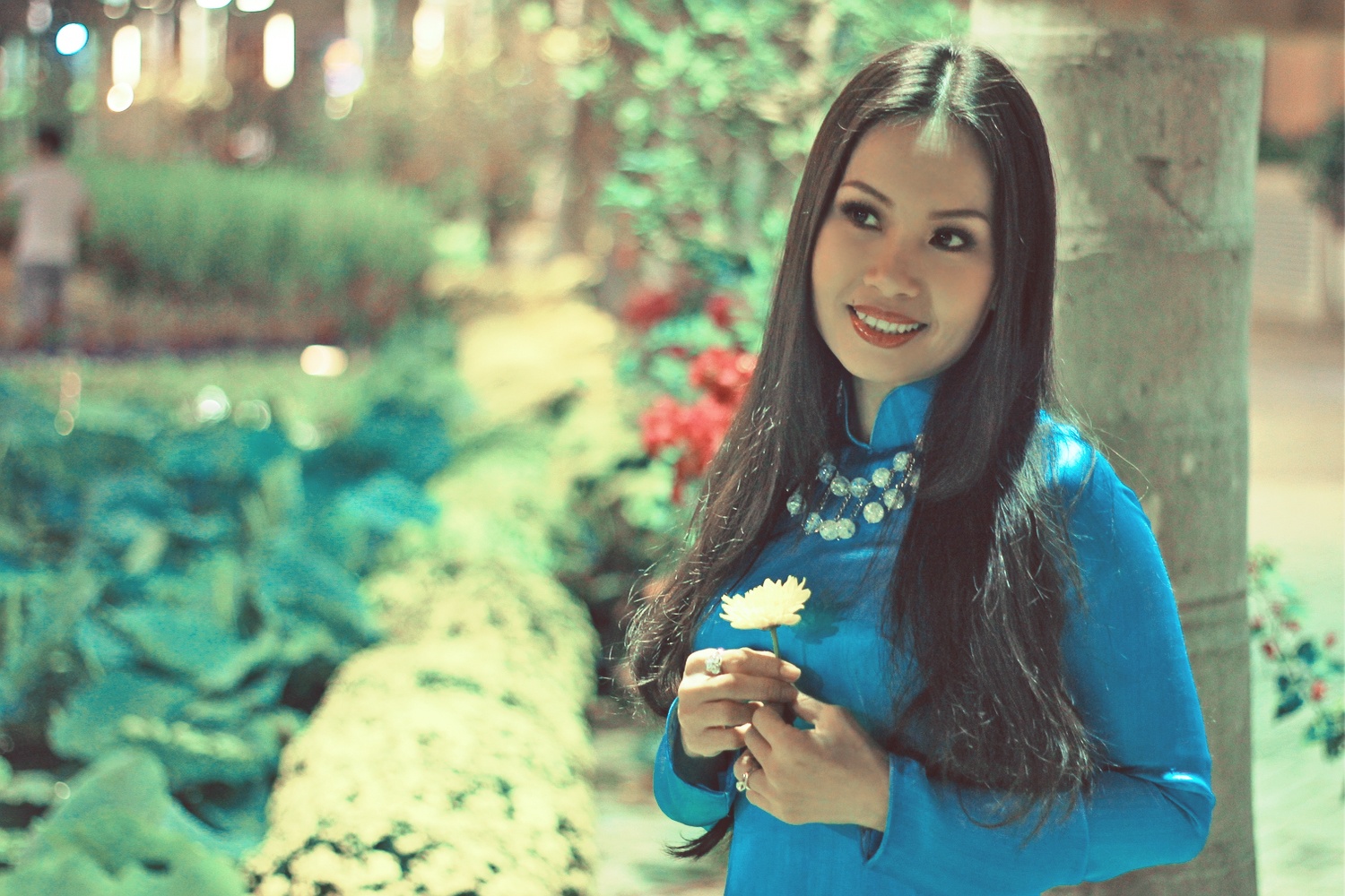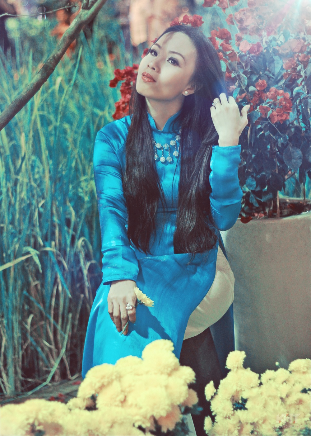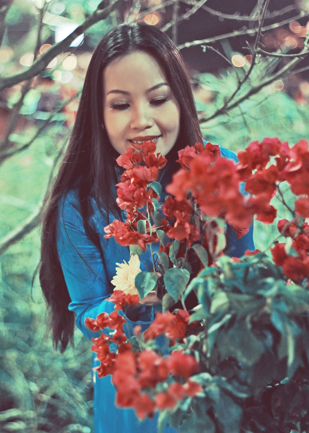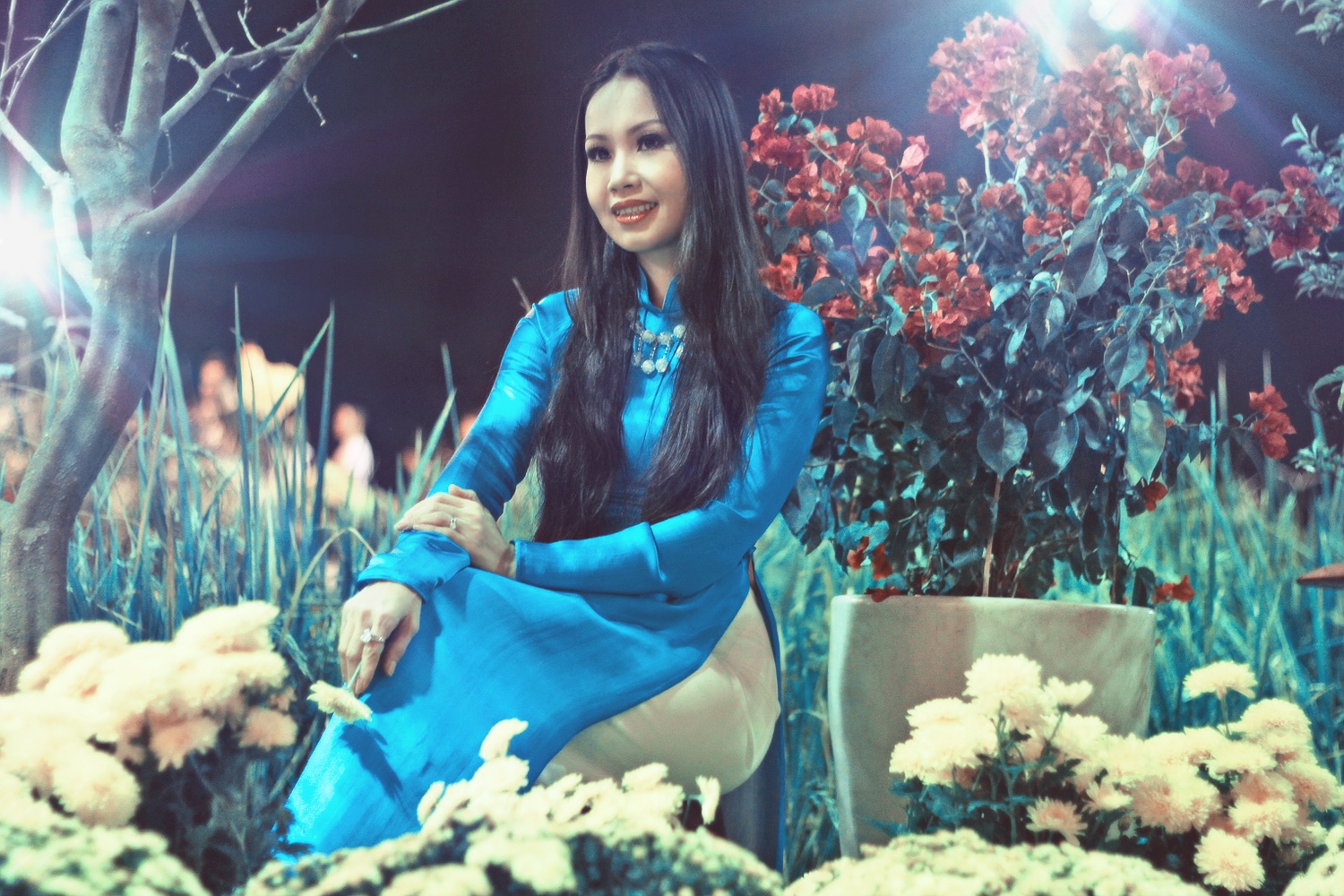 Nhờ vậy mà trong không gian tấp nập, rộn ràng của đường hoa, nữ ca sĩ vẫn toát lên nét dịu dàng, nhẹ nhàng của người phụ nữ.