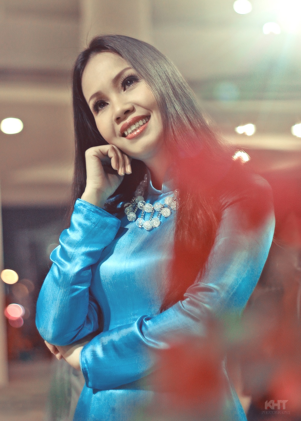 Trong tà áo dài truyền thống, nữ ca sĩ toát lên nét dịu dàng, nhẹ nhàng của người phụ nữ.