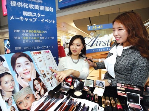Hàng mỹ phẩm miễn thuế bán rất chạy trong sân bay Incheon. |