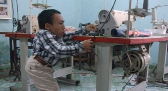 | Thầy Nguyễn Ngọc Phương đang sửa chữa mô tơ điện cho máy may ở trung tâm. |
