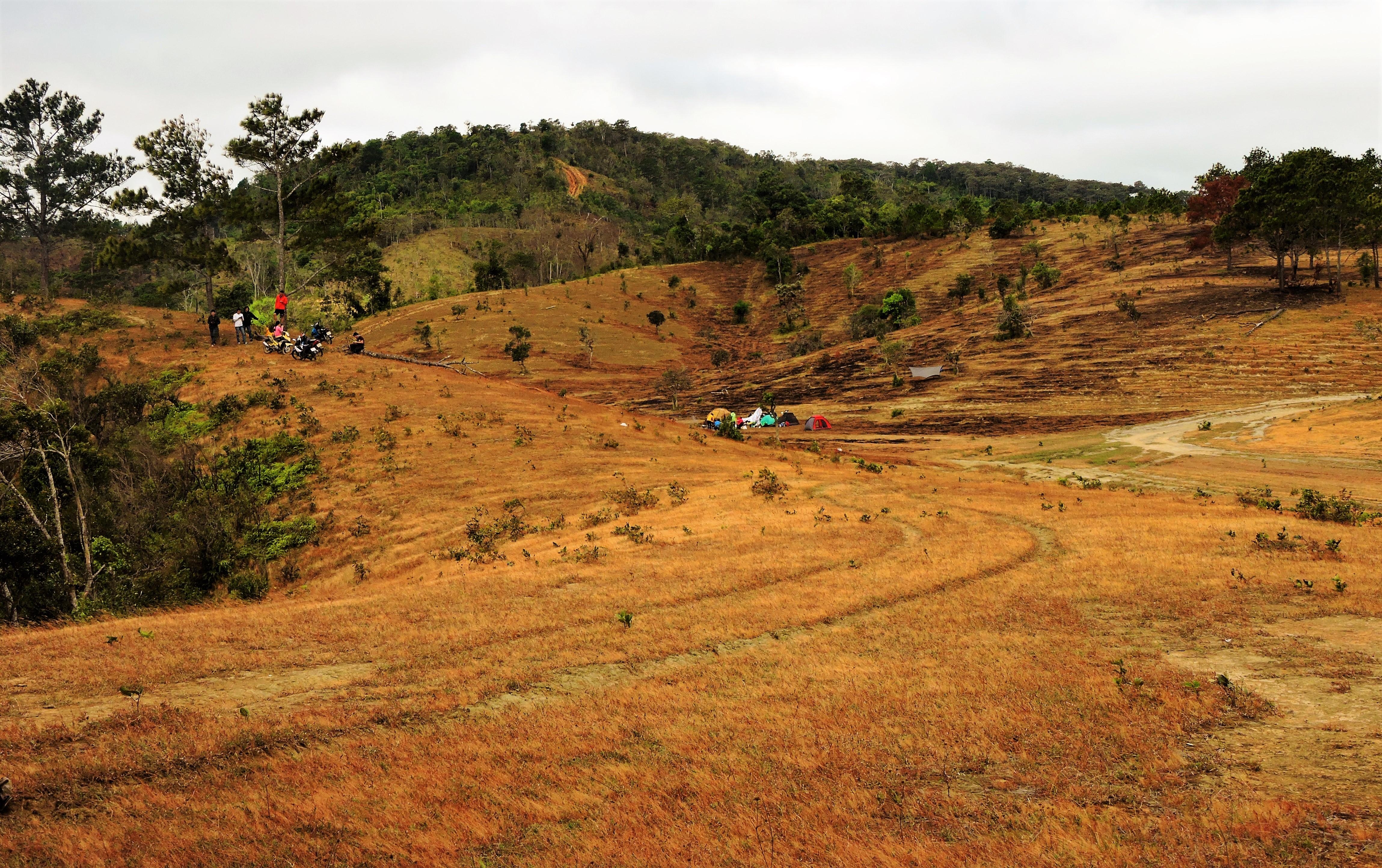 Khi bầu trời vừa chuẩn bị dứt đi những tia nắng cuối cùng cũng là lúc đoàn vừa đặt chân đến thôn Masara. Trước đó, họ chuẩn bị thêm lương thực và ít vật dụng mua ở chợ Đà Loan cách đó 10 km để đốt lửa cắm trại tại Masara. Giữa đồi cỏ bạt ngàn, những cây cô đơn nằm lẻ loi tạo thành một khung cảnh liêu trai nhưng cũng đầy chất thơ. |