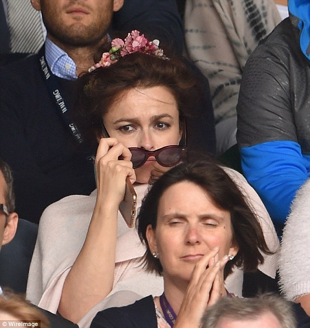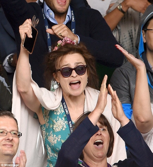 | Nữ diễn viên 49 tuổi người Anh, Helena Bonham Carter cổ vũ nhiệt tình cho hai tay vợt. |