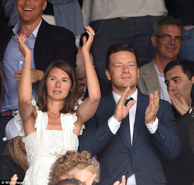 | Bếp trưởng lừng danh thế giới người Anh, Jamie Oliver và vợ Jools Oliver tới cổ vũ chung kết. |