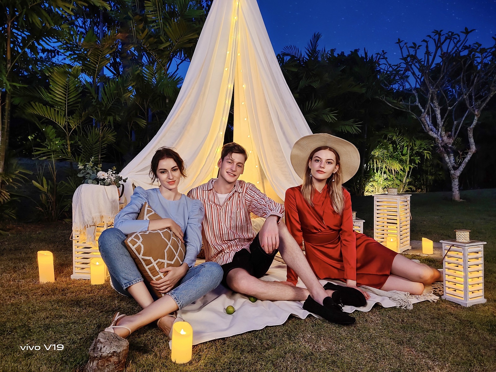 Tương tự camera selfie, máy ảnh chính của V19 cũng có riêng chế độ chụp ảnh đêm. Ngay trong những điều kiện ánh sáng phức tạp như cắm trại, dã ngoại, smartphone của vivo vẫn cho khả năng xử lý hình ảnh ấn tượng. Bộ 4 camera cho phép chụp nhanh mọi khoảnh khắc mà vẫn đảm bảo hình ảnh không bị nhiễu, độ chi tiết cao, màu sắc được tái tạo rực rỡ trong khi các chuyển động không bị nhòe hoặc mất nét.