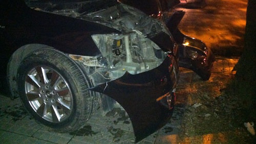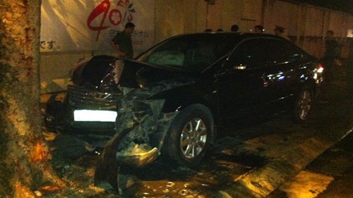 Thời điểm trên, chiếc xe Camry mang biển kiểm soát 29Z đang lưu thông bất ngờ mất lái, phóng thẳng lên vỉa hè và đâm vào gốc cây bên đường.