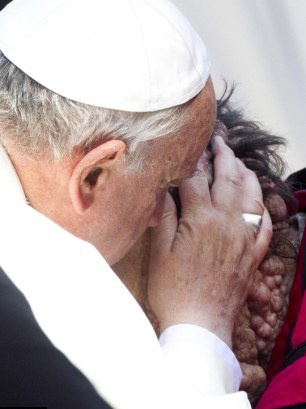 Hình ảnh Giáo hoàng Francis ôm hôn “người mặt quỷ” tại quảng trường Thánh Peter khi ban phước nhanh chóng lan truyền trên mạng Internet và khiến thế giới xúc động.