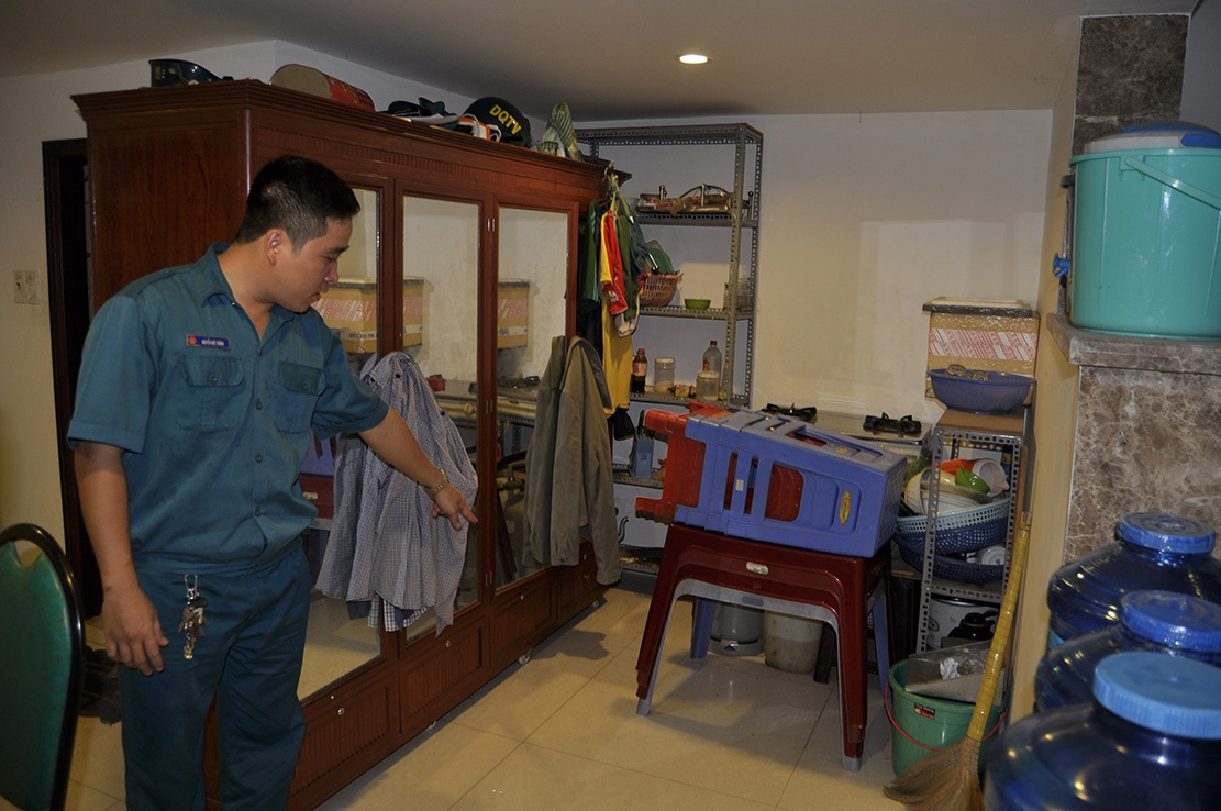 Thấy thanh niên bị nạn trong phòng làm việc, anh Nguyễn Hữu Thắng, Phó ban chỉ huy quân sự phường Trung Dũng đã chạy đến can ngăn.
