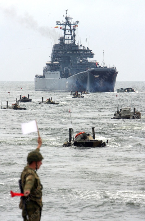 Tàu đổ bộ Minsk trong cuộc tập trận năm 2009. Với tải trọng tối đa đạt 4.080 tấn, Minsk vẫn có thể di chuyển với vận tốc tối đa 33 km/h.