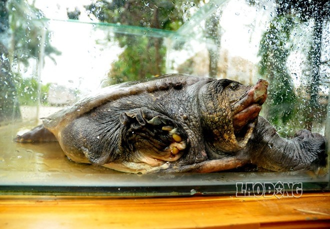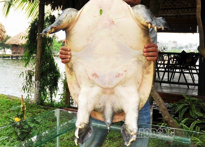 Ba ba Nam Bộ (cua đinh) nặng gần 40kg, dài khoảng 75cm, ước tính có tuổi thọ 50 năm được phát hiện tại khu du lịch sinh thái Vĩnh Hưng, Hà Nội.