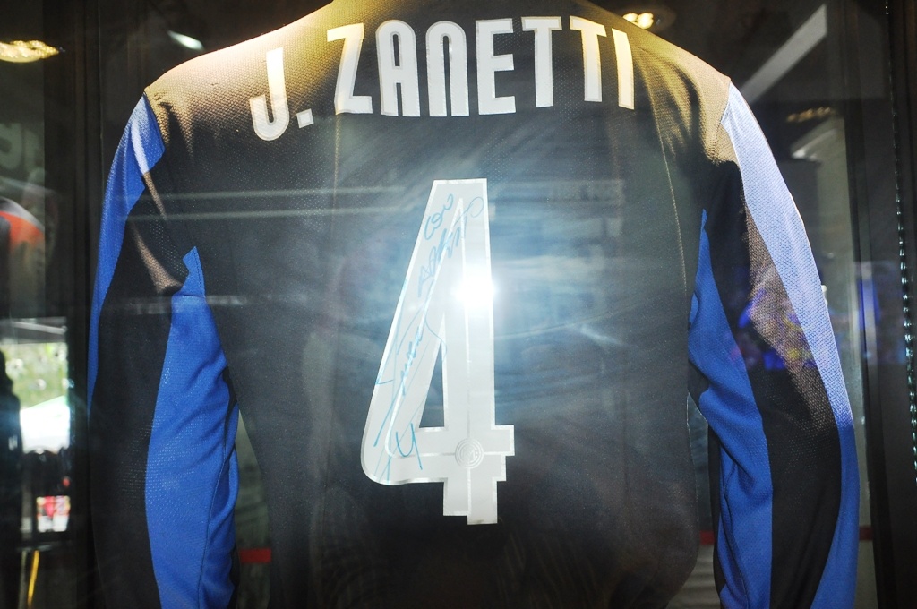 | Chiếc áo đấu có chũ ký của Zanetti (Inter Milan). |