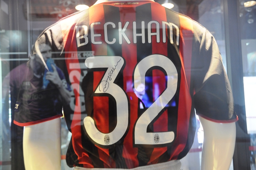 | Áo đấu của AC Milan có chữ ký của David Beckham. |